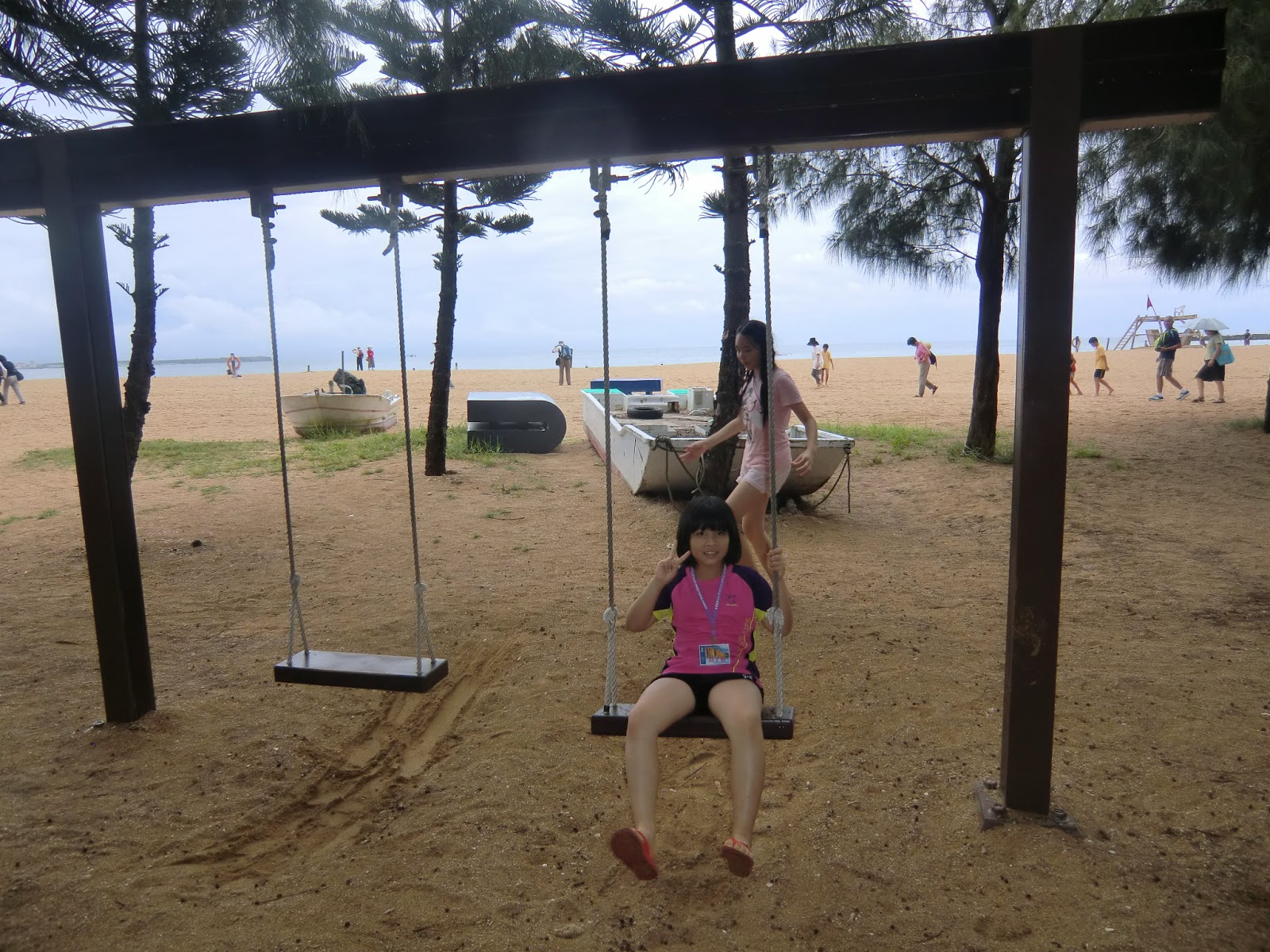 子安子怡參加的兒童營工作人員也在澎湖辦一周的兒童營,下午大家去看望在澎湖的營會,小朋友們看到從台北搬來澎湖的氣墊,馬上衝上去玩。